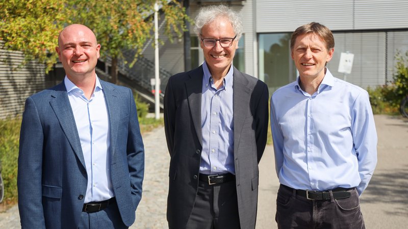 von links: Institutsleiter Prof. Dr. Dr. Davor Lessel, Nobelpreisträger 2024 Prof. Dr. Victor Ambros, Prof. Dr. Gunter Meister (Lehrstuhl für Biochemie I, Universität Regensburg)